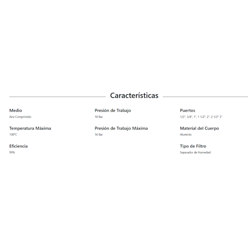 El separador de humedad o de condensados de la serie GAMMA es una solución idónea cuando existe una gran cantidad de agua en la linea de aire comprimido, el condensado puede afectar los componentes neumáticos, la producción final y dañas los elementos de mando y de trabajo instalados en la maquina.